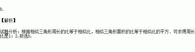 如果两个相似三角形的面积比是1:4,那么它们的周长比是( )