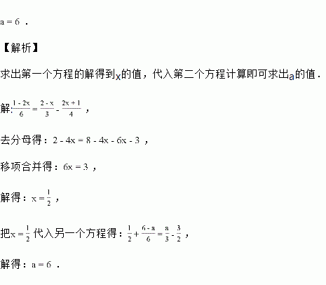 若方程的解,同时也是关于x的方程 的解,求a的值.