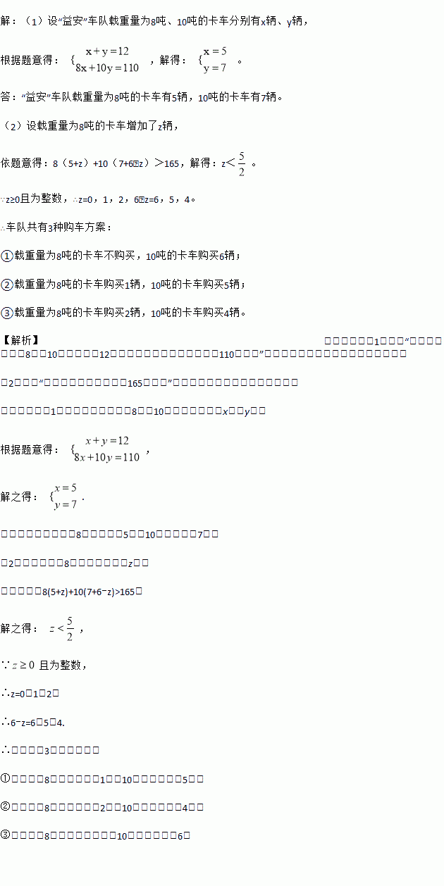 (1)求“益安”车队载重量为8吨、10吨的卡车各有多少辆?