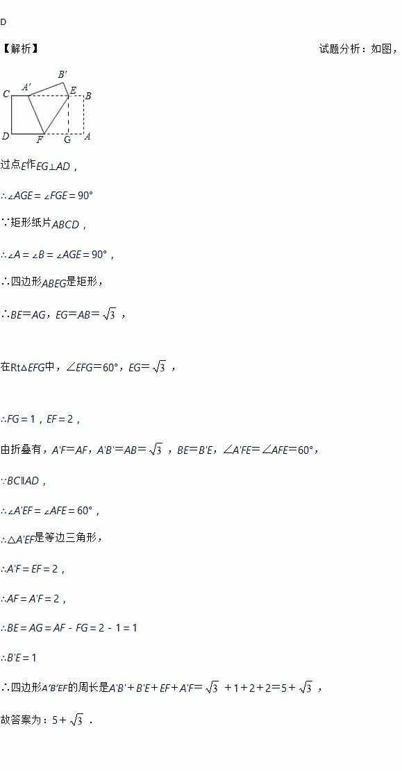 ,∠EFA=60°,则四边形A′B′EF的周长是( )