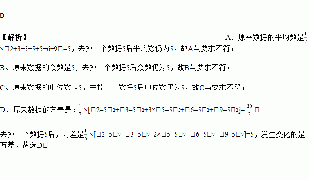 一组数据2,3,5,5,5,6,9.若去掉一个数据5,则下列统计量中,发生变化的是( )