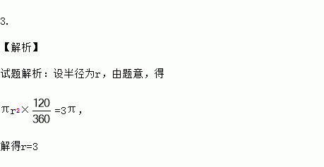 已知扇形的面积为,圆心角为120°,则它的半径为________.