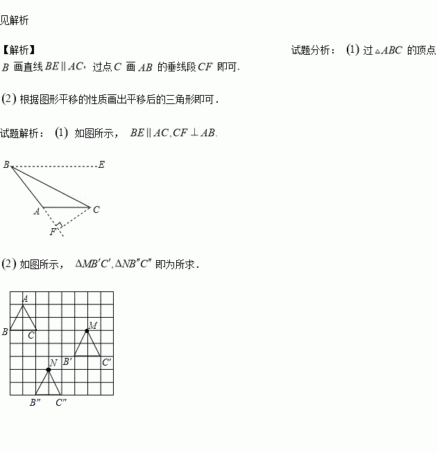 (2)如图,在方格中平移三角形ABC,使点A移到点M,点B,C应移动到什么位置?再将A由点M移到点N?分别画出两次平移后的三角形