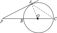 ∵PA切⊙O于点A,直线PBC经过点圆心O,