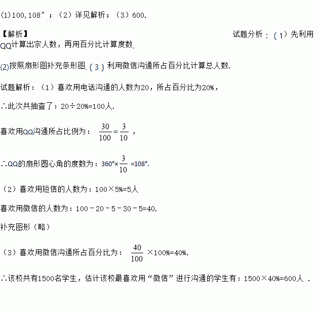 (3)该校共有1500名学生,请估计该校最喜欢用“微信”进行沟通的学生有多少名?