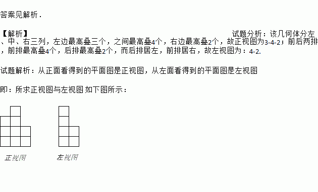 由若干个相同的小立方体组成一个几何体,从其上面看到的平面图形如图所示,其中的数字表示在该位置上的小立方体的层数.请分别画出从正面和左面看这个几何体得到的平面图形.