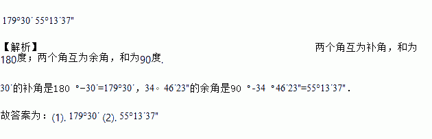30ˊ的补角是_______,3446ˊ23"的余角是______.