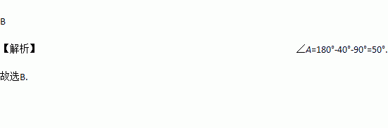 在△ABC中,已知∠B=40°,∠C=90°,则∠A的度数为( )