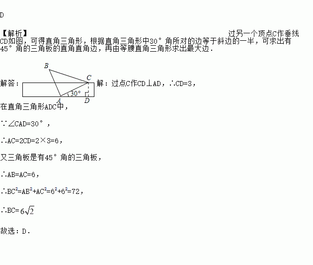 将一个有45°角的三角板的直角顶点放在一张宽为3cm的纸带边沿上,另一个顶