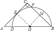 分析:首先利用三角形相似的判定方法证明△AEO∽△OMB,进而求出CE与BC的长,再利用切割线定理求出CF即可.