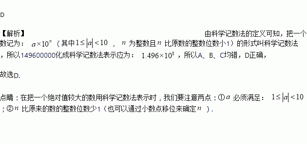 A. 1496×105 B. 149.6×106 C. 14.96×107 D. 1.496×108
