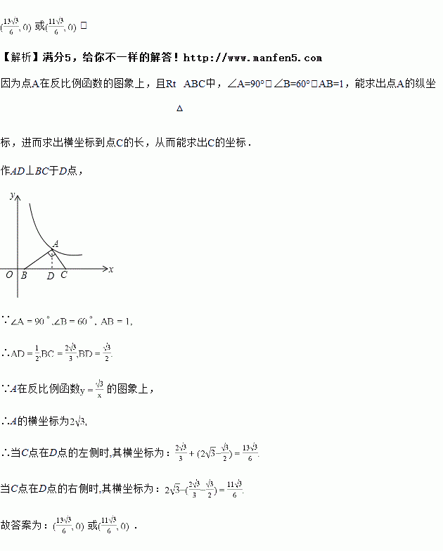 如图,将一个的直角三角形板的斜边放在轴上,直角顶点在反比例函数的图象上,,求点的坐标.