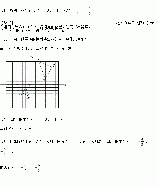 (1)以O为位似中心,作△A′B′C′∽△ABC,相似比为1:2,且保证△A′B′C′在第三象限;