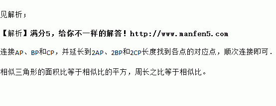 如图,以点P为位似中心画△ABC的位似图形△DEF,使△ABC与△DEF的位似比为1:2,并写出△ABC与△DEF的面积比和周长比.