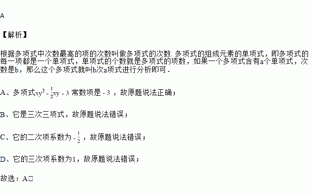 A. 它的常数项是 B. 它是二次三项式 C. 它的二次项系数为 D. 它的三次项系数为0