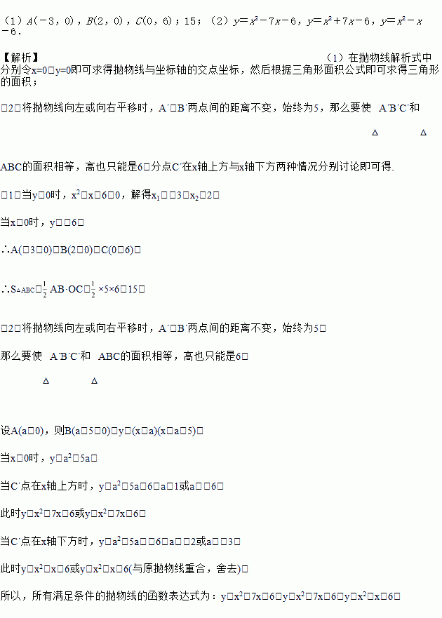 (2)将抛物线向左或向右平移,得到抛物线L?,且L?与x轴相交于A?、B?两点(点A?在点B?的左侧),并与y轴交于点C?,要使△A?B?C?和△ABC的面积相等,求所有满足条件的抛物线的函数表达式.