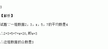 一组数据2,3,x,5,7的平均数是4,则这组数据的众数是 .
