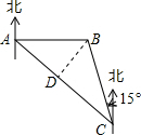 分析 (1)作BD⊥AC于D,设BD为xkm,根据方向角、利用三角函数的定义分别求出AD、DC,列出方程,解方程即可;