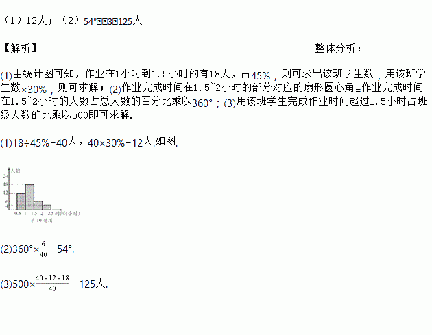 (2)计算出作业完成时间在1.5~2小时的部分对应的扇形圆心角;