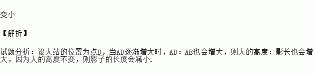 如图,地面A处有一支燃烧的蜡烛(长度不计),一个人在A与墙BC之间运动,则他在墙上的投影长度随着他离墙的距离变小而 .(填“变大”、“变小”或“不变”).