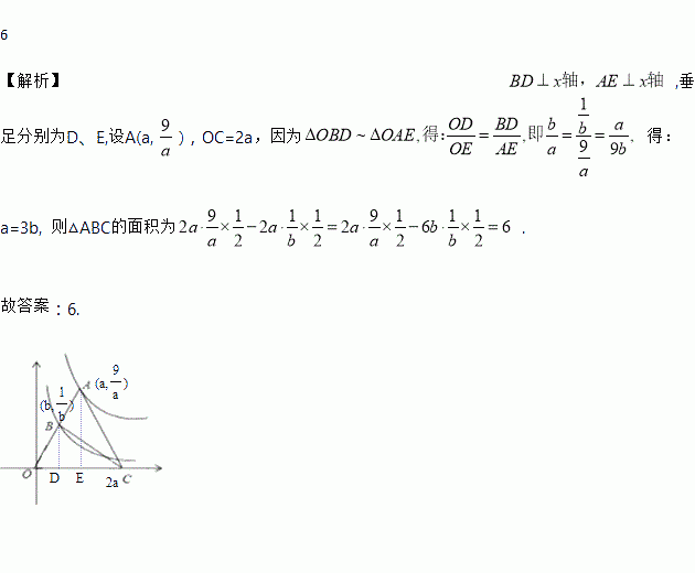 如图,点A为函数y=(x>0)图象上一点,连结OA,交函数y=(x>0)的图象于点B,点C是x轴上一点,且AO=AC,则△ABC的面积为__.