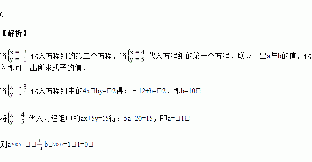 甲、乙两人共同解方程组,由于甲看错了方程①中的a,得到方程组的解为;乙看错了方程②中的b,得到方程组的解为,试计算a2006+(﹣b)2007的值.