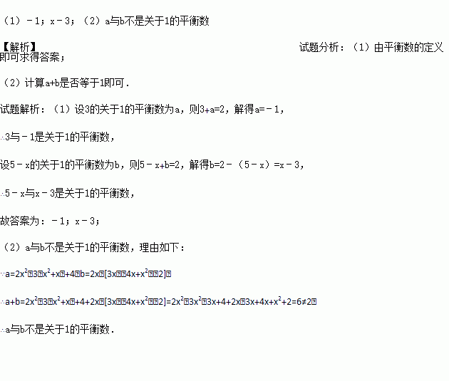 (2)若a=2x2﹣3(x2+x)+4,b=2x﹣[3x﹣(4x+x2)﹣2],判断a与b是否是关于1 的平衡数,并说明理由.