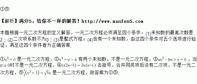 下列方程中,①x2=0;②x2=y+4;③ax2+2x﹣3=0(其中a是常数);④x(2x﹣3)=2x(x﹣1);⑤