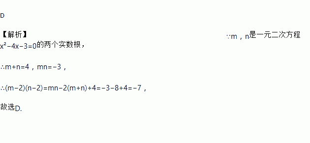 已知m,n是一元二次方程x 2 -4x-3=0的两个实数根,则 为( ).