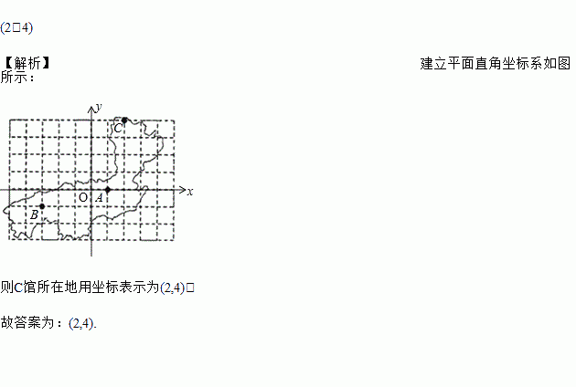 如图是某植物园的平面图,图中A馆所在地用坐标表示为(1,0),B馆所在地用坐标表示为(-3,-1),那么C馆所在地用坐标表示为_______.