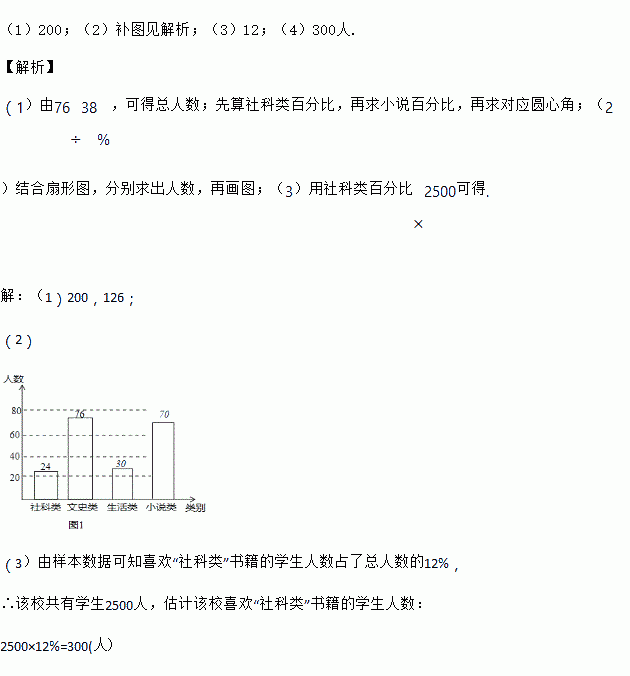 (4)若该校共有学生2500人,估计该校喜欢“社科类”书籍的学生人数.