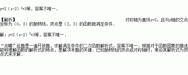 试写出一个开口方向向上,对称轴为直线x=2,且与y轴的交点坐标为(0,3)的抛物线的解析式为______________.
