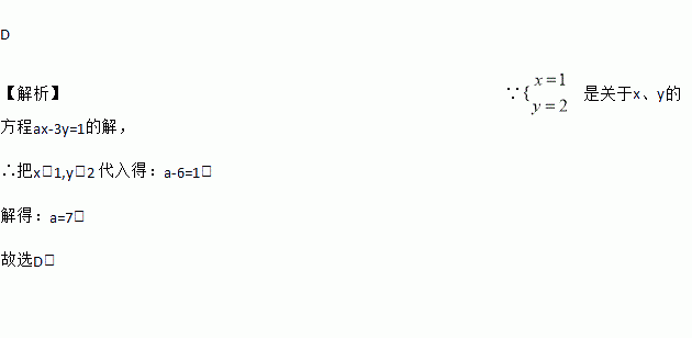 若是关于x、y的二元一次方程ax-3y=1的解,则a的值为( )