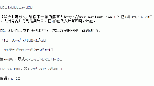 (2)若2A与B互为相反数,求x的值.