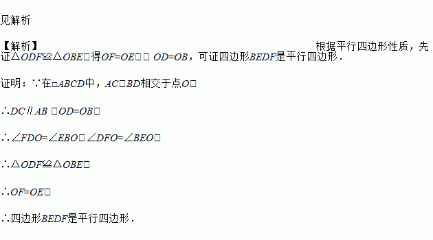 如图,在□ABCD中,AC,BD相交于点O,点E在AB上,点F在CD上,EF经过点O.