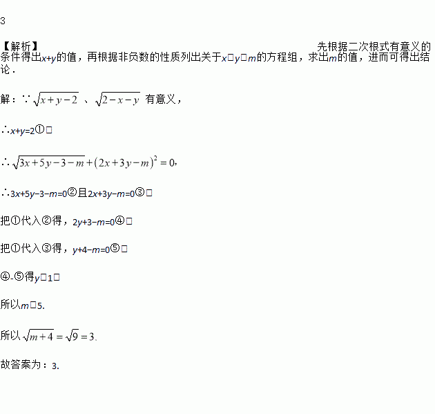 若实数x,y,m满足等式 ,则m+4的算术平方根为 _______.