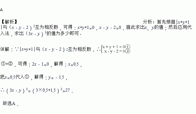 若与互为相反数,则的值为 ( )