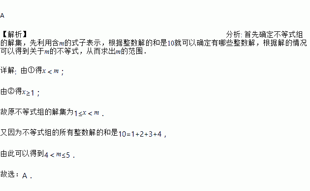 若关于x的不等式组所有整数解的和是10,则m的取值范围是( )