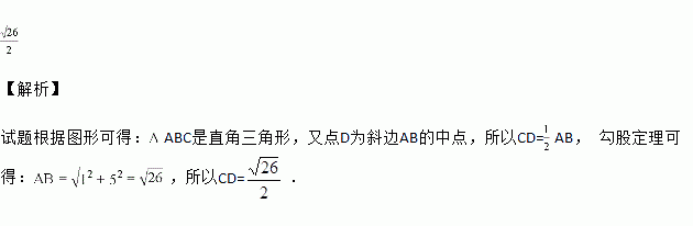 如图,每个小正方形的边长为1,在△ABC中,点D为AB的中点,则线段CD的长为__.