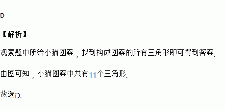 图中的小猫(示意图)是由三角形组成的,三角形的个数为( )