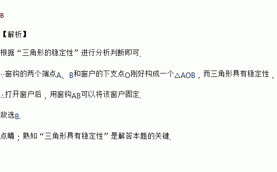 如图,一扇窗户打开后,用窗钩AB可将其固定,这里所运用的几何原理是( )