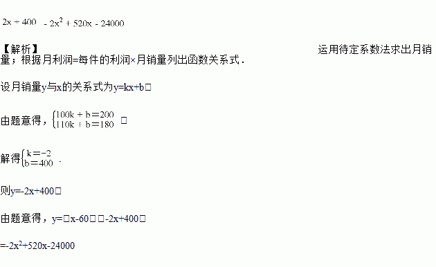 月销量(件) | 200 | 180 | 160 | 140 | … |