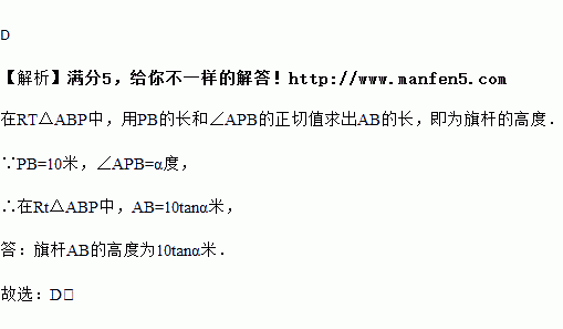 如图,小明为测量学校旗杆的高度,在操场上选了一点,测得点到旗杆底端的水平距离为米,度,则旗杆的高度为( )