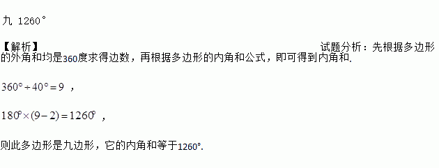 一个多边形的每一个外角等于40°,则此多边形是_____边形,它的内角和等于_____ .