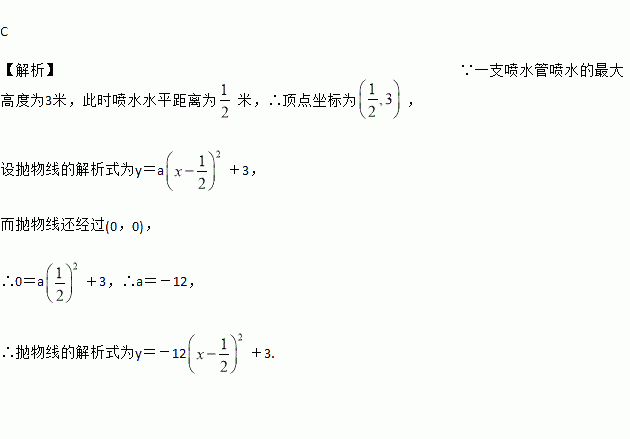 某广场有各种音乐喷泉,其中一个喷水管喷水的最大高度为3 m,此时距喷水管的水平距离为
