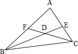 解:如图,∠ABC、∠ACB的平分线交于点D,