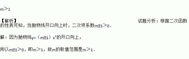 如果抛物线y=(m﹣1)x2的开口向上,那么m的取值范围是__.