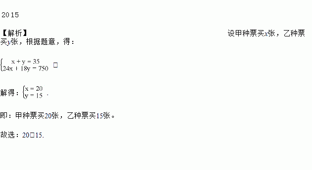 某班去看演出,甲种票每张24元,乙种票每张18元,如果35名学生购票恰好用去750元,那么甲种票买了____张,乙种票买了____张.