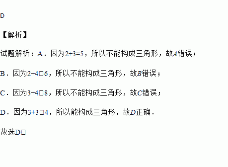 A. 2cm,3cm,5cm B. 7cm,4cm,2cm C. 3cm,4cm,8cm D. 3cm,3cm,4cm