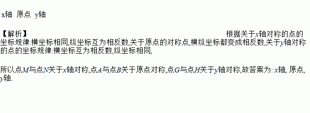 点M(2,-3)与点N(2,3)关于______对称;点A(-2,-4)与点B(2,4)关于______对称;点G(4,0)与点H(-4,0)关于____________对称.